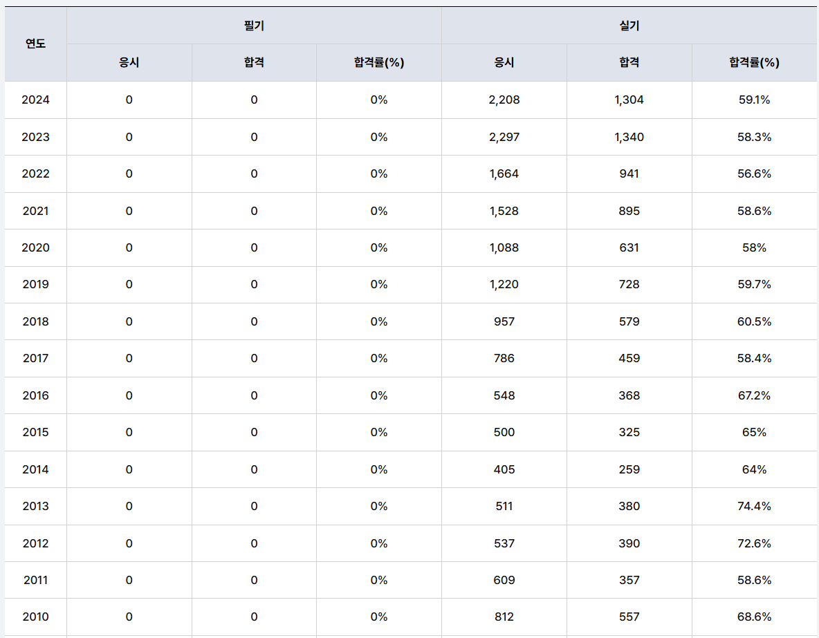 | 실기시험 | 작업형 | 5시간 정도 | 100점 만점 중 60점 이상 |