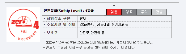- 준비물: 개인 안전보호구(KCS 인증제품), 안전화(선심(toe-cap) 부착 필수)