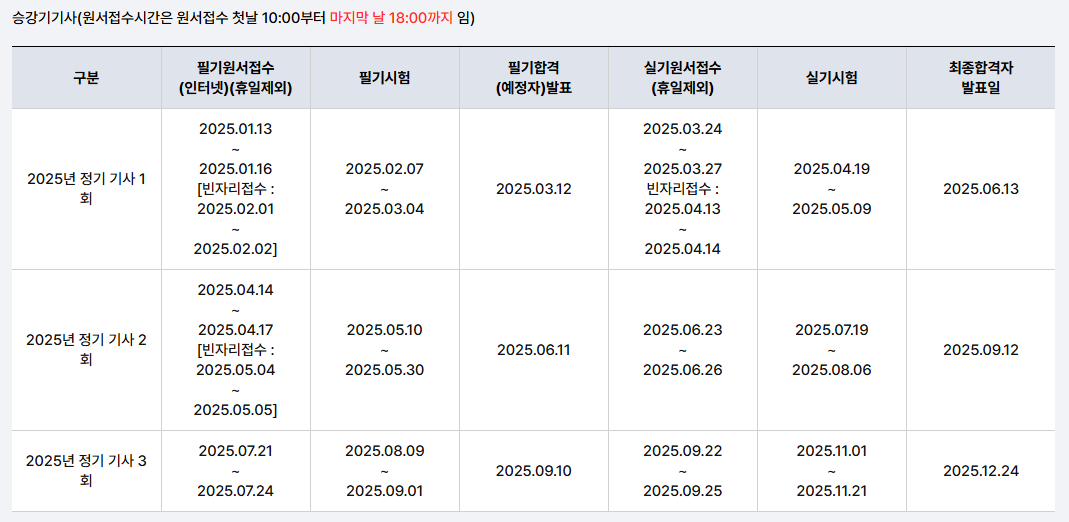 2025년 시험일정