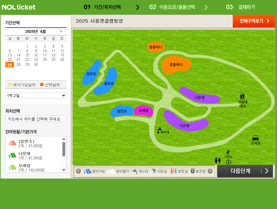 예약은 인터파크 홈페이지를 통해 이루어지고 있습니다. 회원가입 후 원하는 날짜와 사이트를 선택하여 예약하실 수 있습니다.