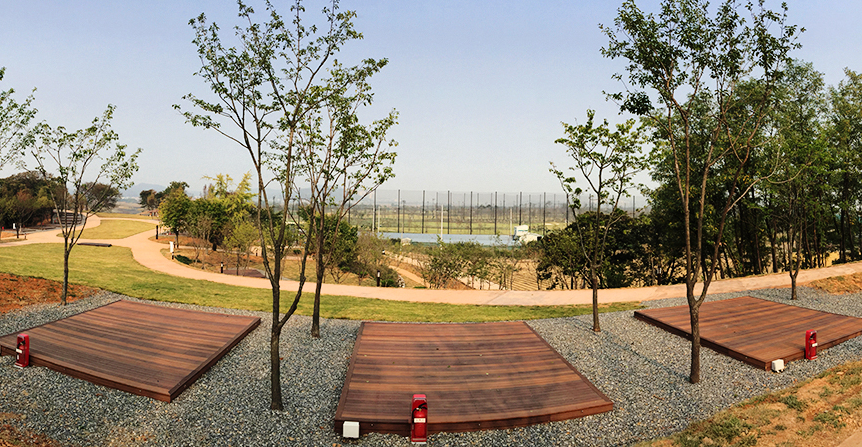 넓은 잔디밭과 모래 놀이터, 전망 테크, 흔들의자 등 아이들과 함께 자연을 만끽할 수 있는 다양한 시설이 마련되어 있습니다.