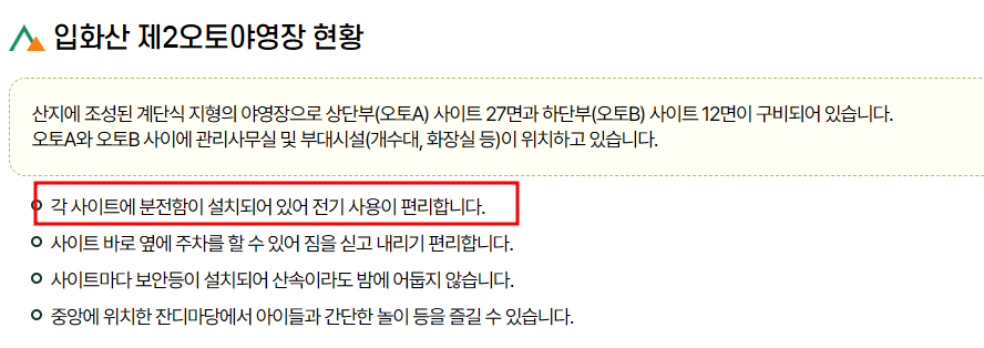 - 캠핑장 규모: 총 39개 / 오토A 27개(대 중 소), / 오토B 12개 (중,소)
