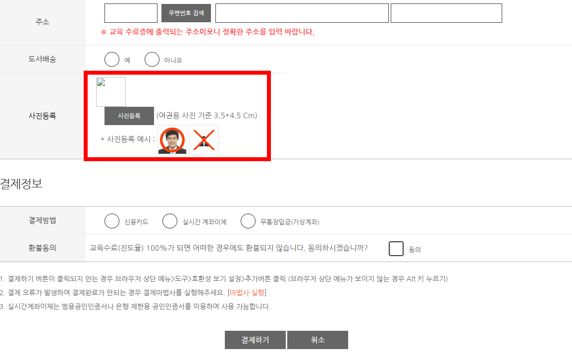 필요한 자료 준비: 수강 신청 시 여권용 사진 파일(PNG, JPEG, GIF 형식)을 준비해야 합니다.
