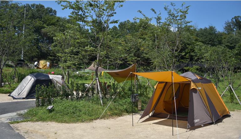 - 캠핑장 시설: 트리하우스, 잔디광장, 어린이놀이터, 매점, 관리사무소, 샤워장, 세척실 등